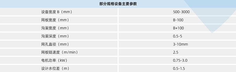 1、详细注明设备的渠宽、渠深、网板孔隙、安装角度和出渣高度。