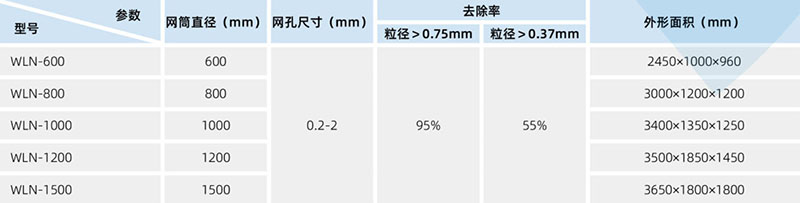 WLN型内进水微滤机又称旋转式微滤机,适用于工业废水中的固液分离,可去除悬浮颗粒大于0.2mm的污物,污水平缓均匀地布入由缓冲进水口进入旋转网筒内部,通过网筒与内壁导渣螺旋的旋转,将截留污物通过另一端排出,过滤的水由网筒缝隙排出。