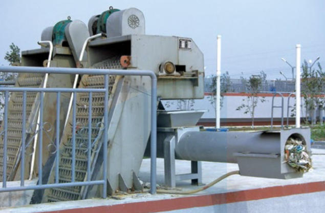 该设备采用无轴螺旋式,当物料从输送压榨机的送料斗进入,依靠螺旋叶片的旋转将物料推移滑行,沿U型输送槽送至压实区,在压榨管及出料门盖的反弹簧压力下,使栅渣压棉脱水,脱水后的栅渣强制打开压力板落至垃圾小车内外运,挤压的渗水则通过回水管路流入格栅井中。