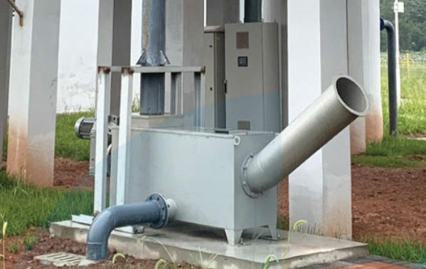 高排水螺旋压榨机由排水区、进料区、螺旋输送区、出料区组成。栅渣进入料区,通过螺旋压榨机在压实区进行压实后栅渣排出,废液从栅条中流入集水槽。螺旋经开槽的压力管中段起,输送段在压缩区结束。螺旋输送机的长度限制在一个短的出口之前,使得栅渣在压力管内被挤压。输送和压实通过一个强度极高的钢螺旋来完成,输送长度符合设计要求。螺旋压榨机有足够的刚度,确保无变形。即使在机渣很湿的情况下,也能很好的脱水。冲洗装置可对脱水段自动清洁。
