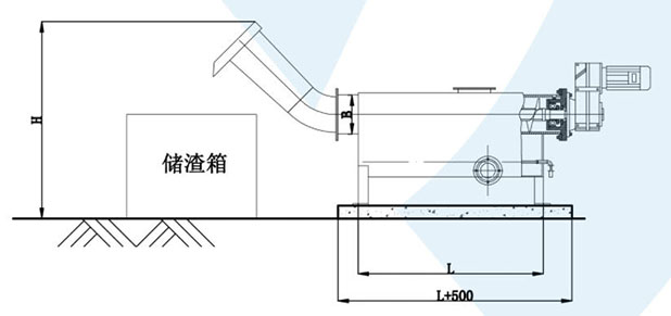 高排水螺旋压榨机的进料口与粗、细格栅除污机或者内进流格栅机的出料口相对应,能够完全接受粗、细格栅除污机排出的栅渣,栅渣进入压榨机后,栅渣被压榨、脱水,废水通过压榨机底部的排水槽排出,压榨、脱水后的栅渣被排放、外运处理。