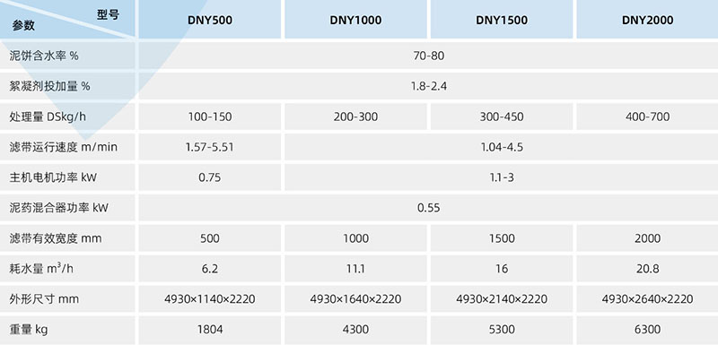 DNY一体化浓缩脱水装置对市政生化污泥有超过20m3/h以上的水力负荷能力,高效的浓缩及脱水效果,超长的预压区,高位卸料机构,体现了该机型强大的适应性,应用极为广泛。