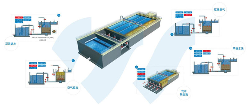 反冲洗空气:由罗茨鼓风机通过整个滤池底部输入反冲洗空气。