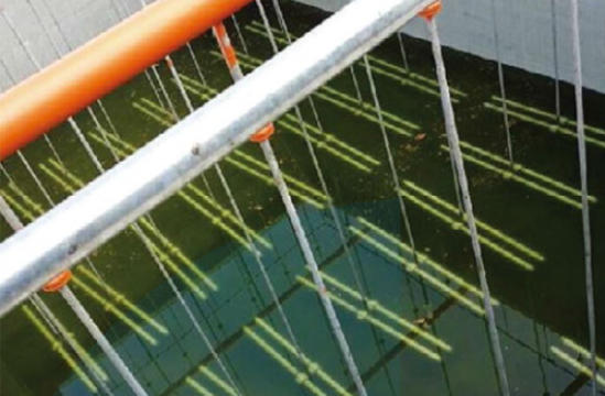 3、每根进气分管要从池岸上的总管分布出来,由法兰或油任连接,靠池壁弯至池内水位液面处。