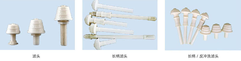 长柄滤头又叫滤帽,用在滤池配水系统和过滤器中。反冲洗滤头包括排水帽、 滤水帽两种,均采用ABS工程塑料制成,结构合理,连接牢固,承压强度高,缝隙不变型,使用效果好,既能防止阴阳树脂外流,短柄)蘑菇型、梅花型、塔型和圆柱型,均采用ABS工程塑料制成,又能保证流最。适用于滤池汽水反冲洗系统和软化水质组合式,压力式,回程式及离子交换器等水处理设备的过滤装置。