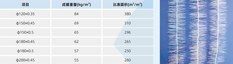 挂膜快、脱膜容易、生物膜生长更新良好、耐高负荷冲击,CODcr去除率高、处理效果好,充氧性能好,可对气泡进行多层次碰掸,密集型切割,可大大的提高氧的转移,氧利用。氧的总转移系数充氧动力效率,其充氧性能五项指标比目前国内通用的各类填料好,降低了动力消耗,结构新颖,有效比表表面积大、不结团、不堵塞,使用寿命长,而且还可重复使用,生产性运行管理简便、适应能力强,对低浓度的生活污水,中浓度的印染废水、造纸废水、含油废水,高浓度的食品工业废水,化工废水等,都有较好的处理效果,可广泛用于好氧、兼氧及厌氧处理工艺。