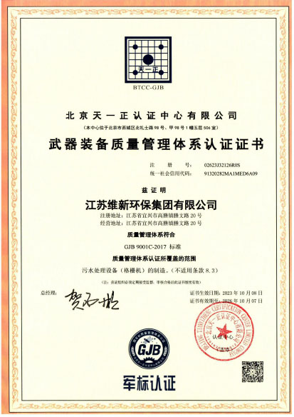 武器装备质量管理体系认证证书(军工标)
